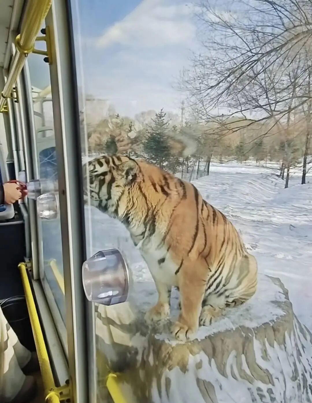 旅客正在喂东北虎。