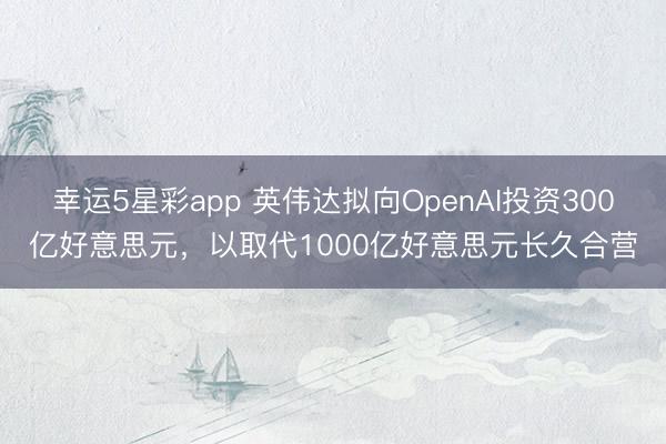 幸运5星彩app 英伟达拟向OpenAI投资300亿好意思元,以取代1000亿好意思元长久合营