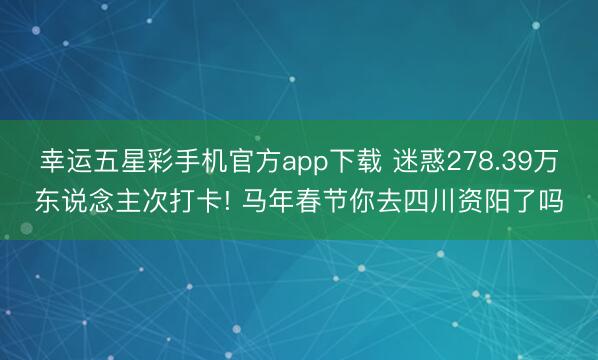 幸运五星彩手机官方app下载 迷惑278.39万东说念主次打卡! 马年春节你去四川资阳了吗