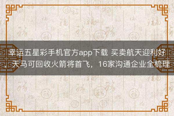 幸运五星彩手机官方app下载 买卖航天迎利好,天马可回收火箭将首飞,16家沟通企业全梳理