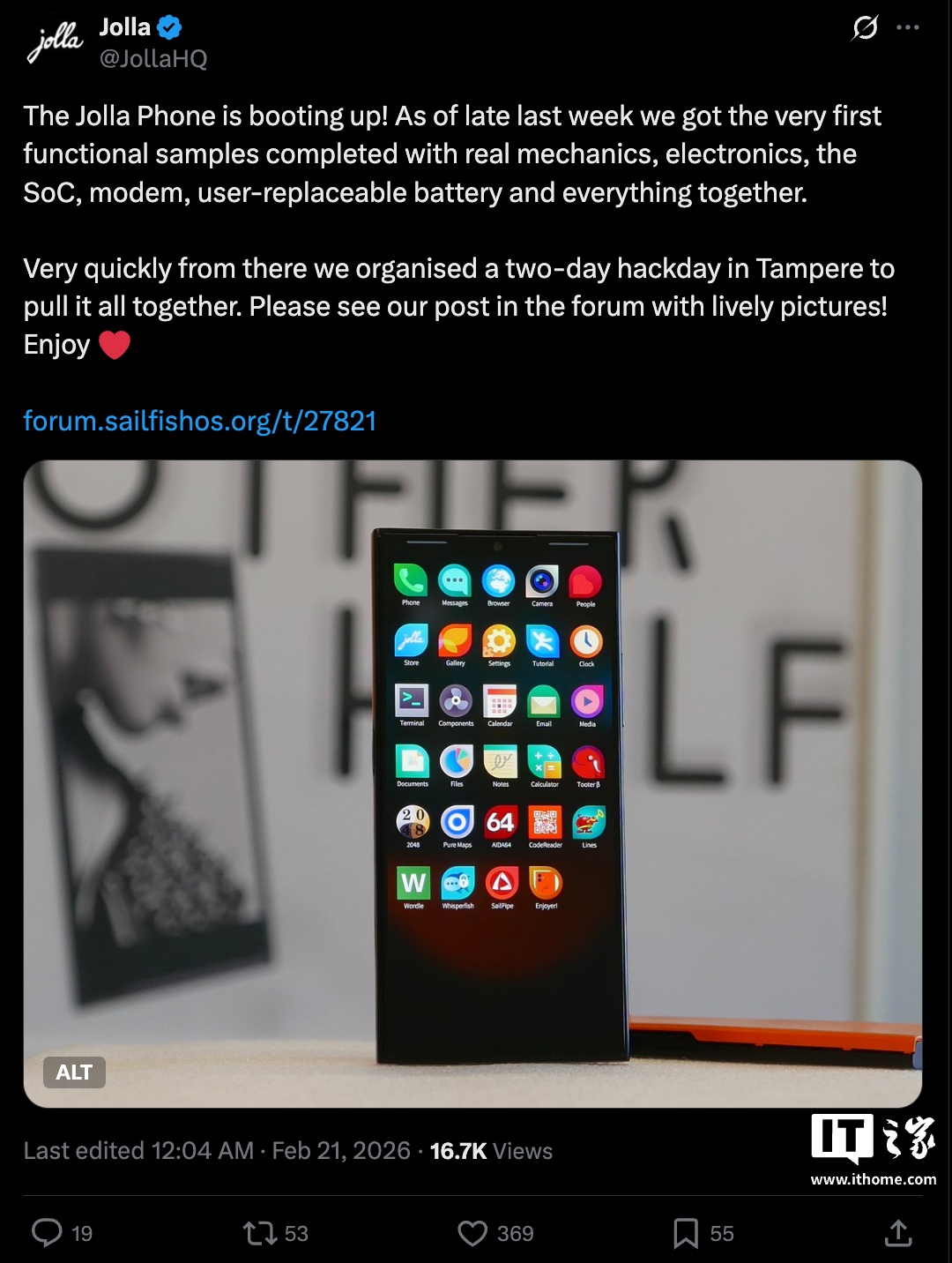 IT之家 2 月 24 日音书,Jolla 现已展示旗下全新 Jolla Phone 工程机,表露该机硬件筹谋已基本定型,现在已可开机插足旗鱼系统,首批产物将于本年上半年录用。