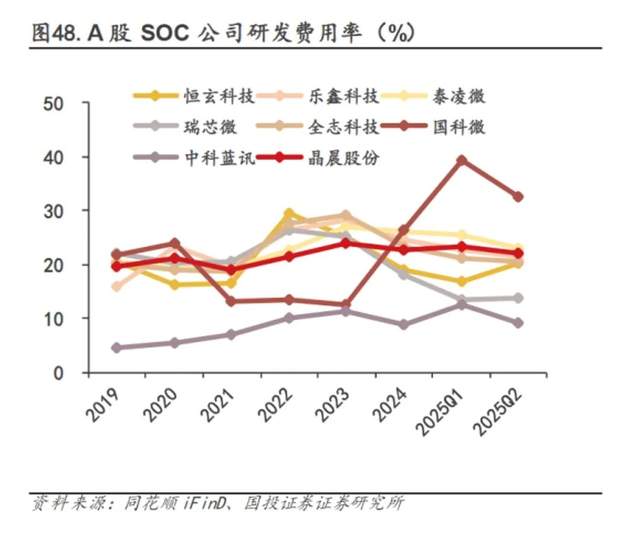 这种复杂性最终体目下研发强度上。国投证券数据浮现,多家A股SoC企业研发用度率渊博处于20%–30%区间。