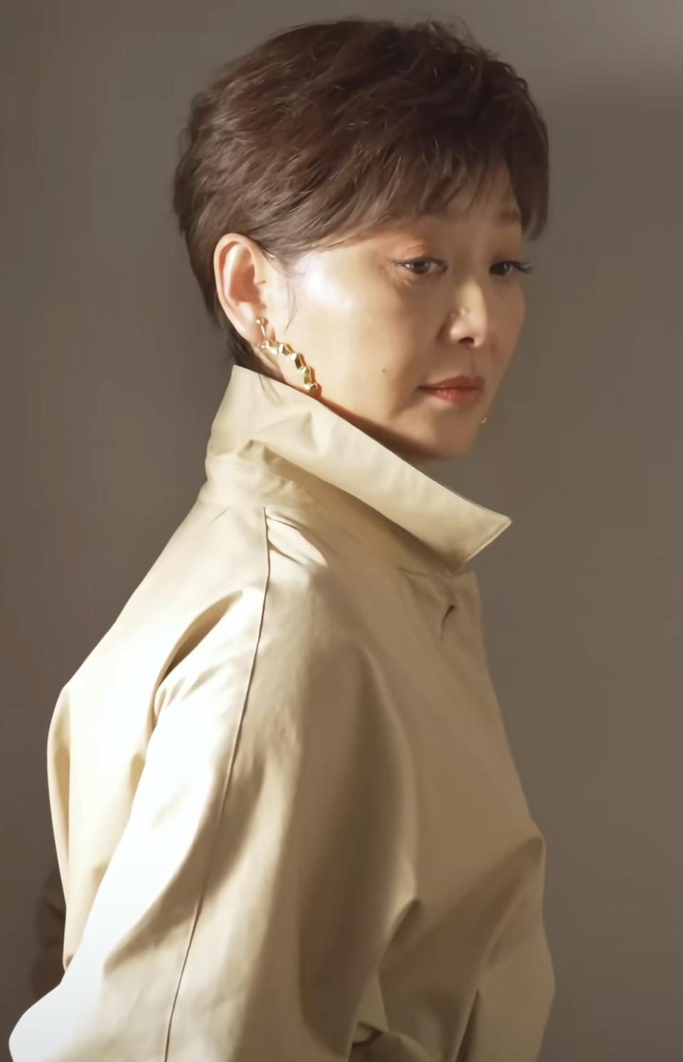 一头利落的短发,化着精致的妆容,要说独一惹眼的就耳边的那对耳饰了。这么的徐帆,低调、干练、杰出大方。