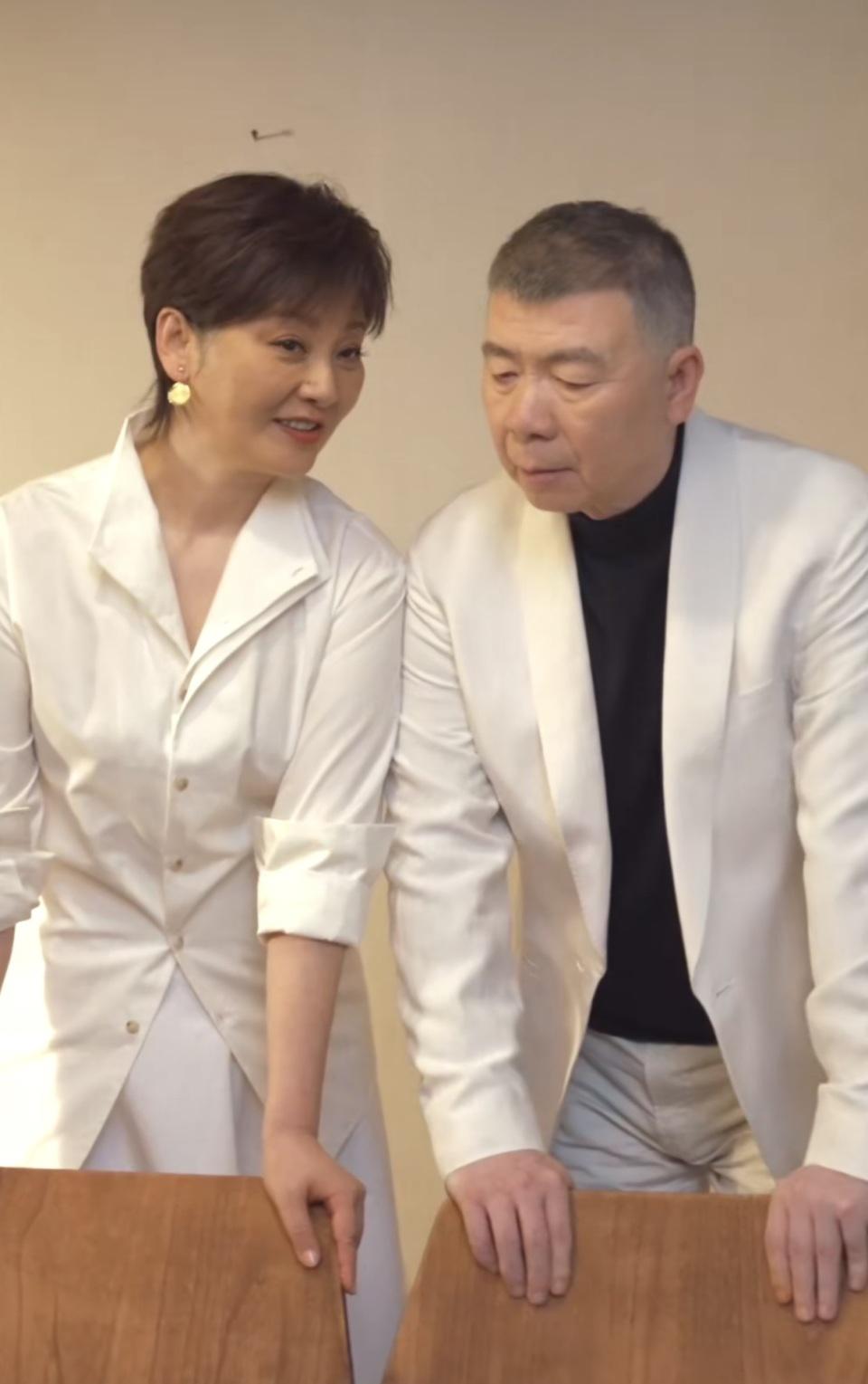 徐帆的气质杰出好,她穿一件个性的白衬衫,当然的将衣袖挽起,一副女强东说念主的神志。冯小刚白西装、玄色内搭,前所未有的帅气。