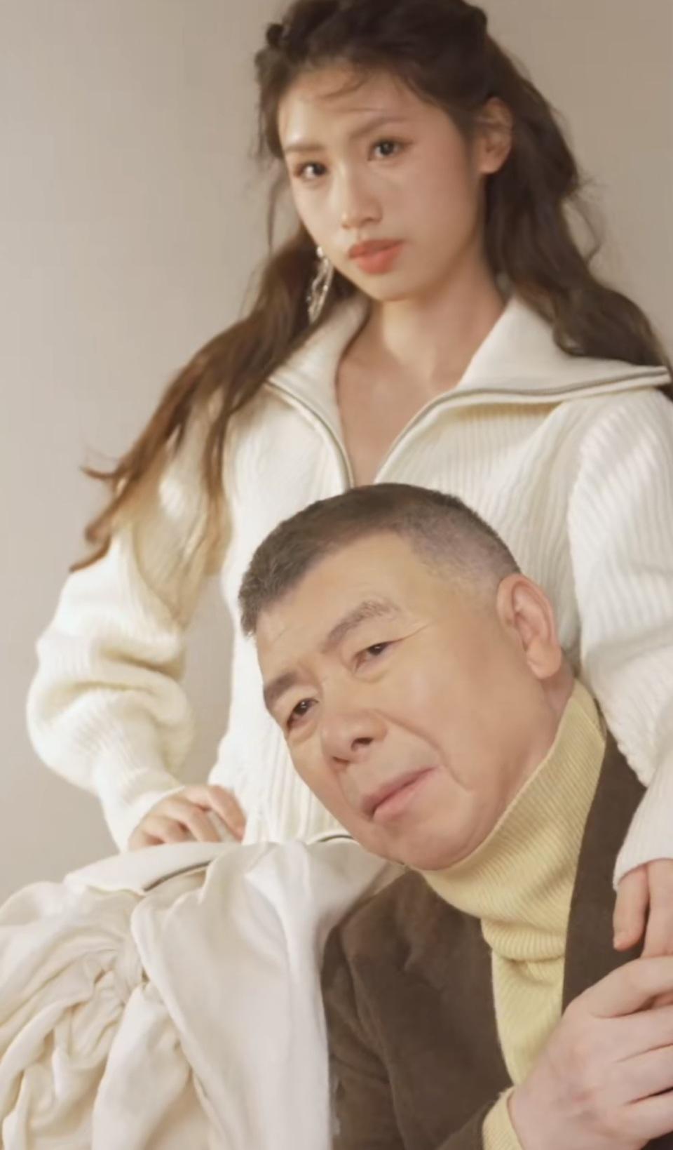 徐朵和养父冯小刚,也拍了不少颜面的镜头。她搂着养父冯小刚的肩膀,父女之间颠倒亲密。