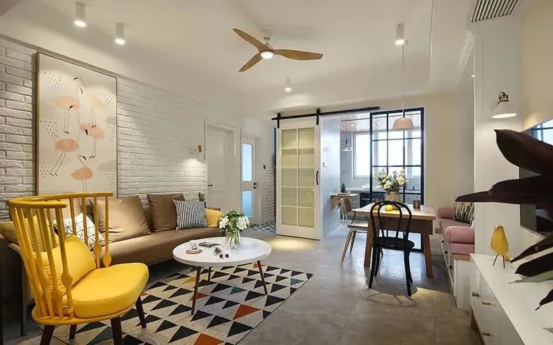 8. 客厅阳台一体:拼色搭配,打造温馨活力感若可爱颜色丰富的温馨空间,别忽视 “拼色” 元素: