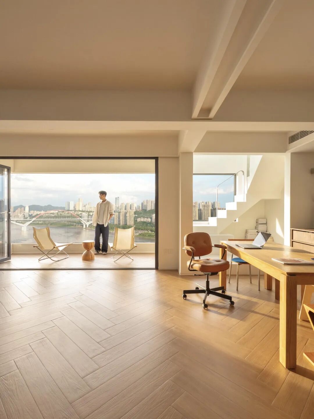 莫得高层挡着,家里全天明亮堂的,阳光豪阔又通透,往阳台一站,城市征象尽收眼底,即是一个私东谈主不雅景台。