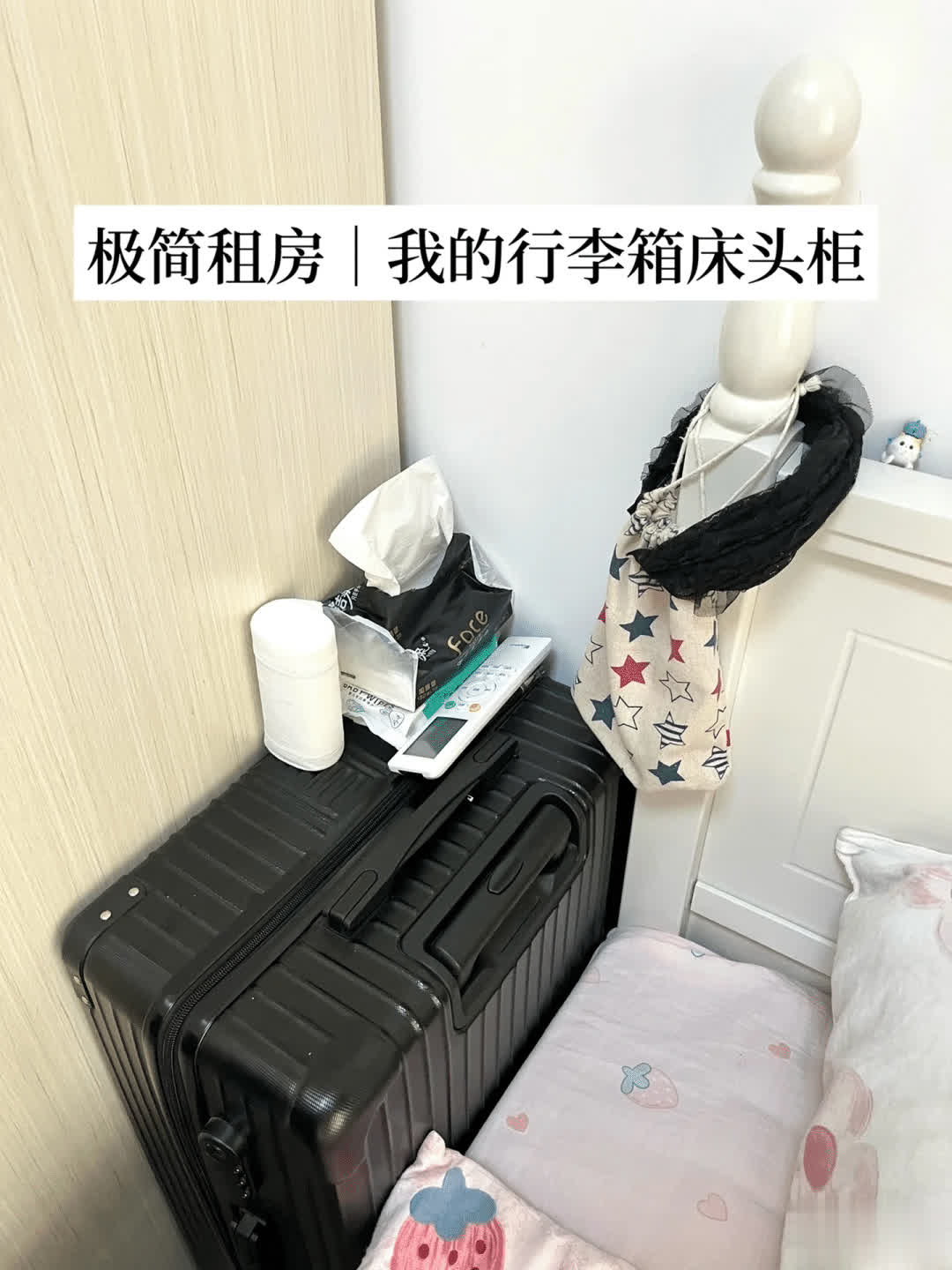 卧室的空间太小,是以根柢就莫得概念安装床头柜,那么卧室的杂物又莫得方位放,其实全球毋庸懆急,咱们不错用闲置的行李箱驾临时期替床头柜。