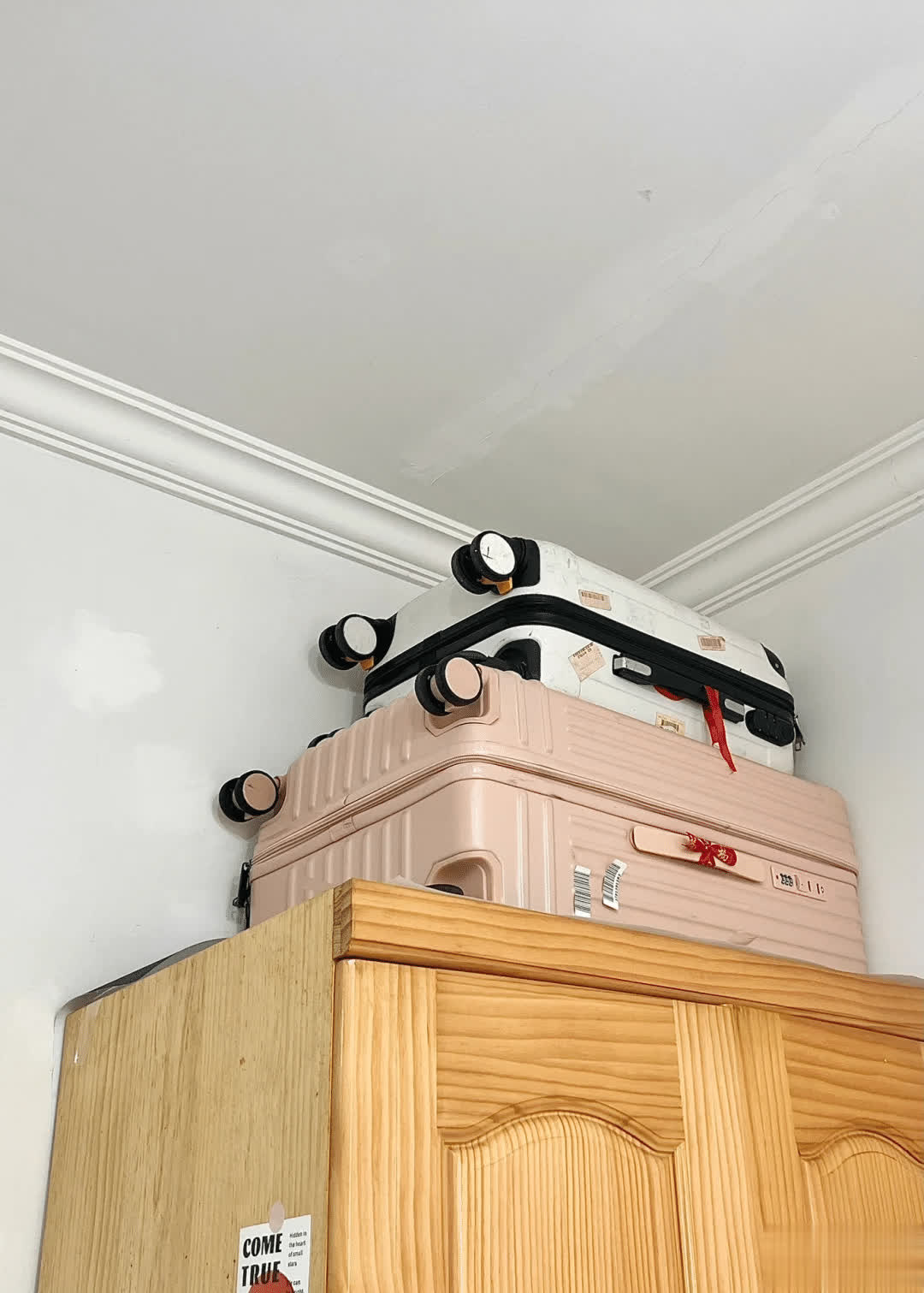 咱们也不错将两个行李箱横过来叠放在一齐,然后纯粹的隐私一下,也不错用来代替床头柜。
