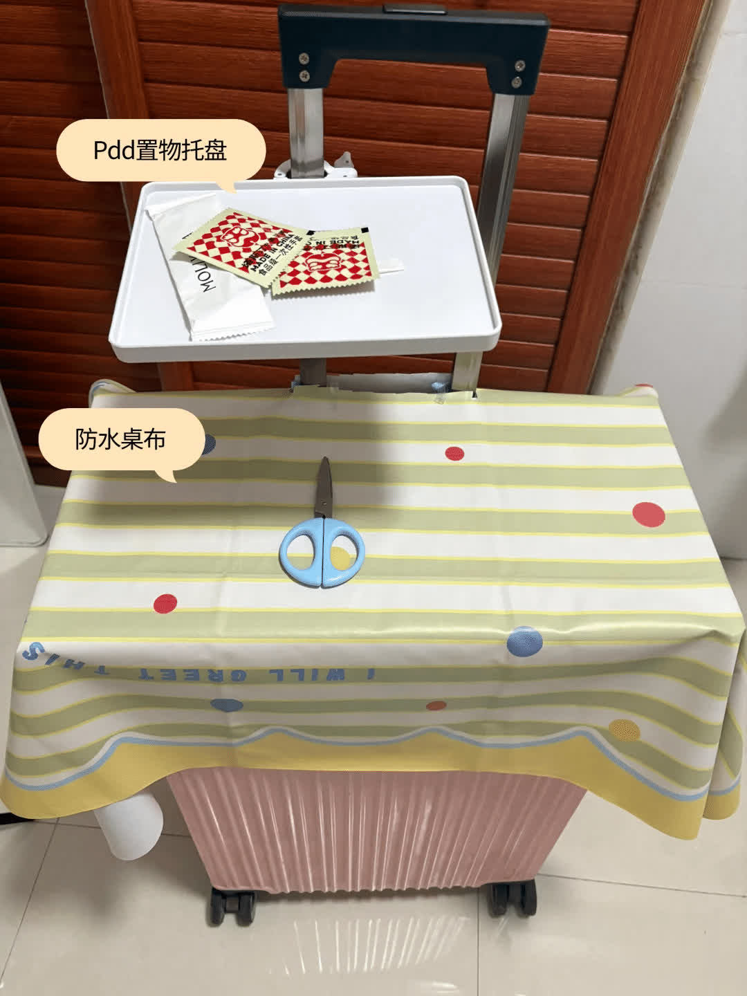 咱们不错铺上颜面的桌布,对着拉杆的位置,用剪刀剪一启齿,但千万不要剪的太大了,这样就可完成了,毋庸行李箱的时间,它就变成了一个迁徙小车,平时用来舍弃一些小杂物,特殊实用。