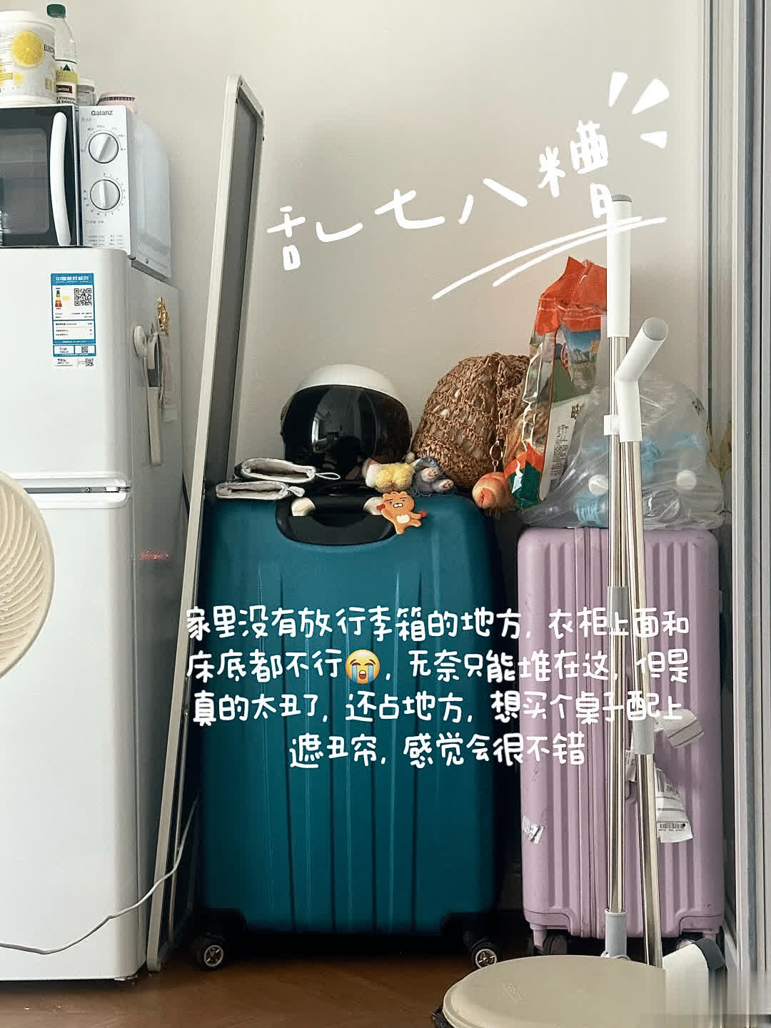 次第特殊纯粹,我把行李上头剪开,然后变成敞口的,再套上个大的垃圾袋,底部自带轮子,想要放哪就放哪,轻轻一推就不错了,打扫卫生也很毛糙。