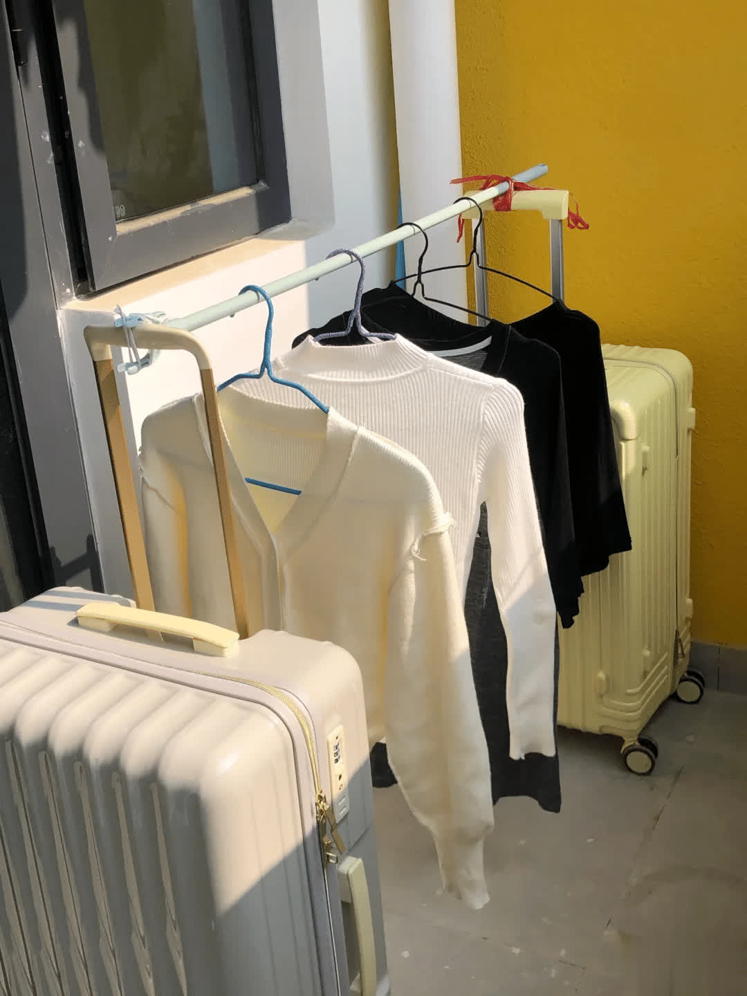 平时家内部大扫除,或者是阳台上的晾衣空间不够,不错试试网友的作念法,把行李箱变成晾衣架。