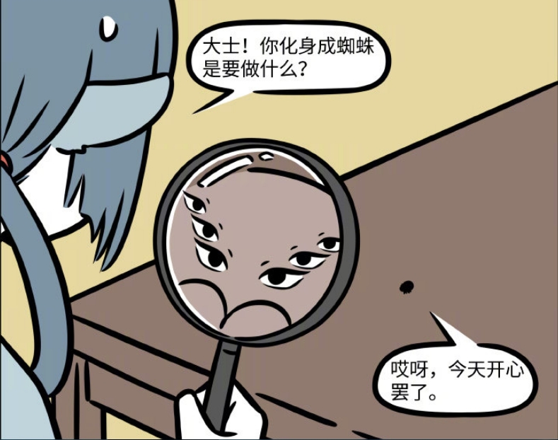 不知说念从那里找了个放大镜,龙女胜仗用放大镜放大桌上的小动物,原本是一只小蜘蛛,这只蜘蛛上的有三对眼睛,而眼睛恰是全国熟谙的大士模样。