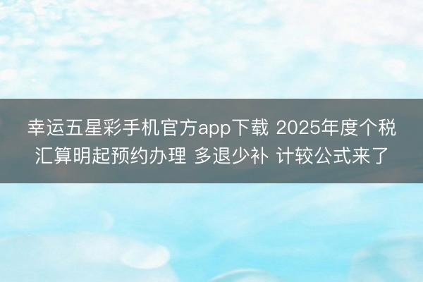 幸运五星彩手机官方app下载 2025年度个税汇算明起预约办理 多退少补 计较公式来了