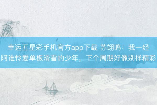 幸运五星彩手机官方app下载 苏翊鸣:我一经阿谁怜爱单板滑雪的少年,下个周期好像别样精彩