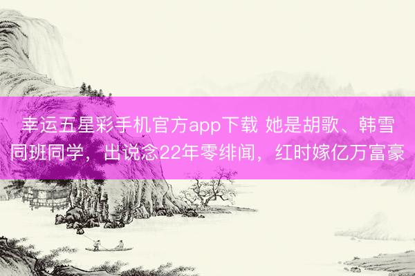 幸运五星彩手机官方app下载 她是胡歌、韩雪同班同学,出说念22年零绯闻,红时嫁亿万富豪