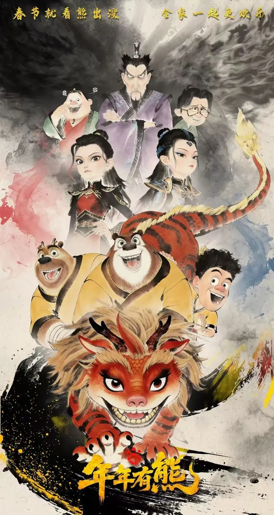 除了怀旧卖点,《熊出没·年年有熊》还告别了此前的科幻主题转向国风蹊径,聚焦春节、年兽元素。